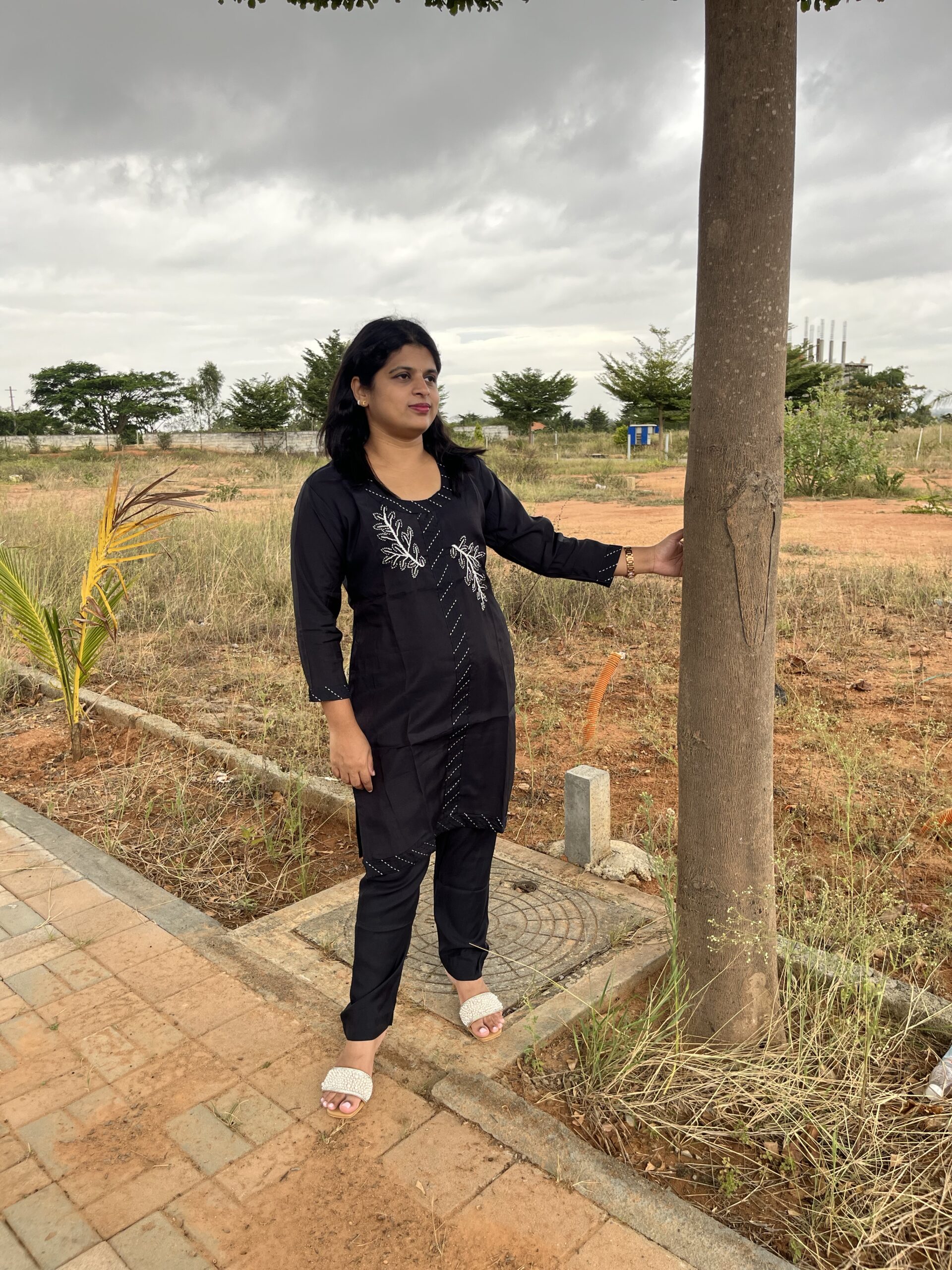 Black Beauty – Elegant Embroidered Co-ord Set in Roman Silk!